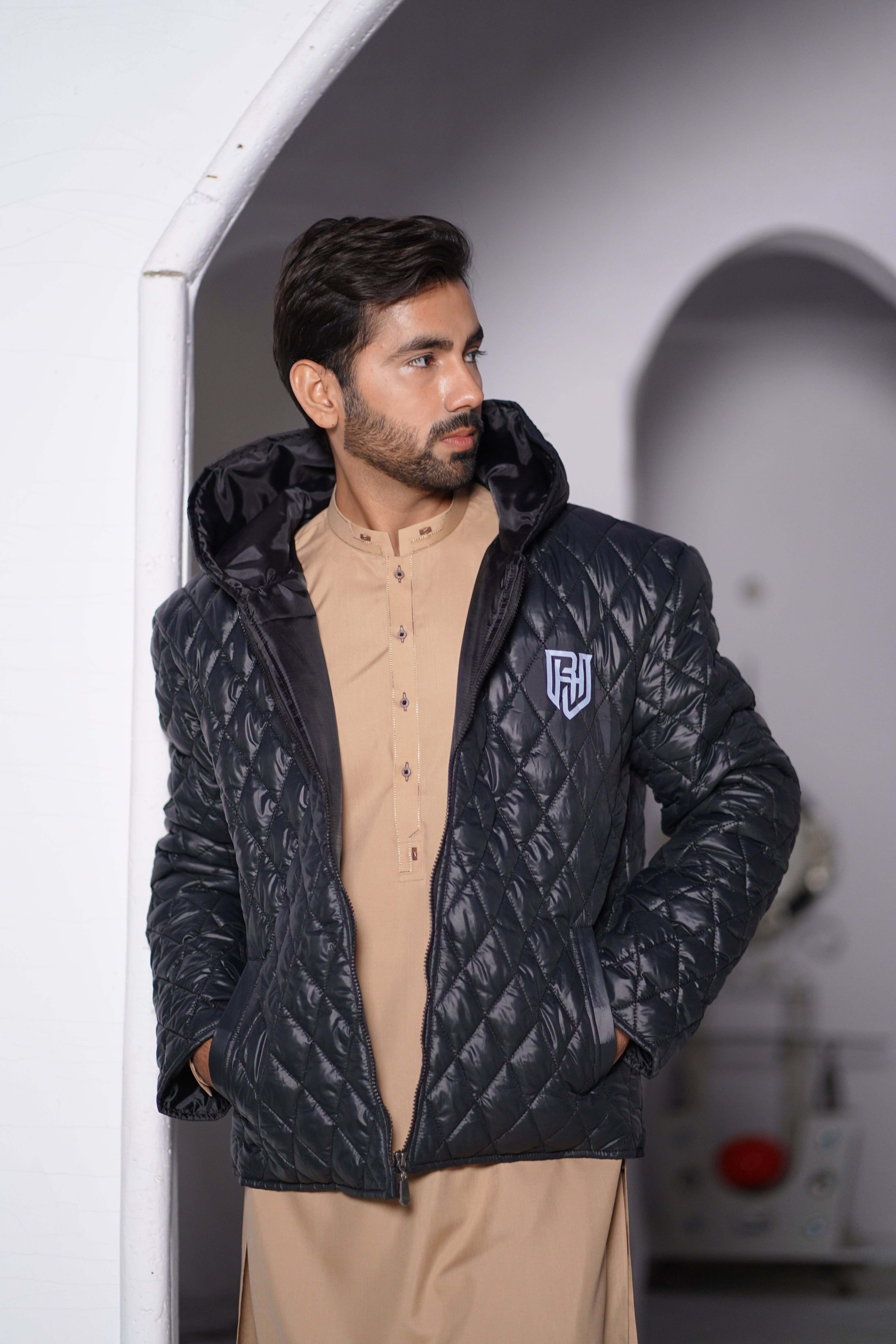 Waterproof puffer jacket with a nylon outer and polyester inner for warmth and comfort. Features two outer pockets, one inner pocket, and a High-quality durable zip. Stylish, lightweight, and built for all-weather protection.