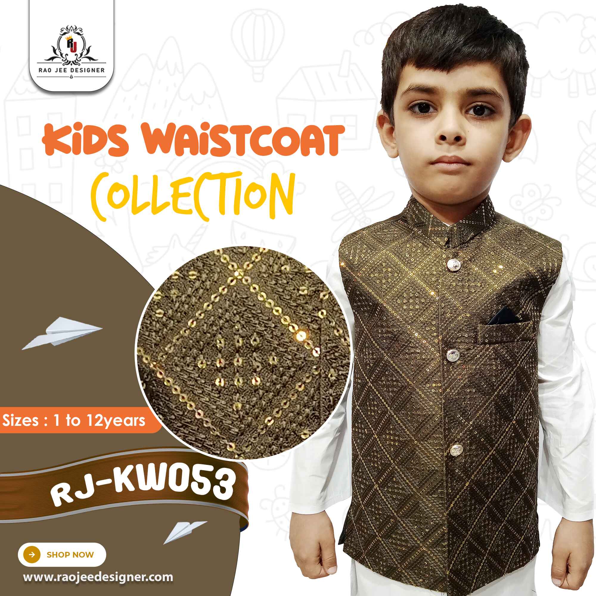 Introducing Rao Jee Designer's adorable Waist Coat for Kids! Each piece is a masterpiece, delicately embroidered to bring charm and sophistication to your little one's ensemble. Crafted with the finest materials, these waistcoats effortlessly blend style and comfort, making every occasion extra special. Elevate your child's wardrobe with our exquisite designs and impeccable craftsmanship! ✨👦🧵
